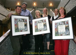 Sunndal Energi KF ble sertifisert i 2008 og resertifisert i 2011 På bildet fra venstre; Gunnstein Stubø (montørformann/hovedverneombud) og Jørund Kvande, daglig leder i Sunndal Energi. Øvrig på bildet er er Randi Dørrum, leder og Camilla Hansen, pedagogisk leder ved Ålvundfjord barnehage, Synnøve Tangen, leder og Anne Smistad, pedagogisk leder ved Øksendal oppvekstsenter som tok i mot beviset på at enhetene deres nå er Miljøfyrtårn. Erling Vebenstad var rådgiver alle virksomhetene. Arild Dyrkorn, Aura Avis (Copyright). Omtale på Sunndal kommunes hjemmeside. |